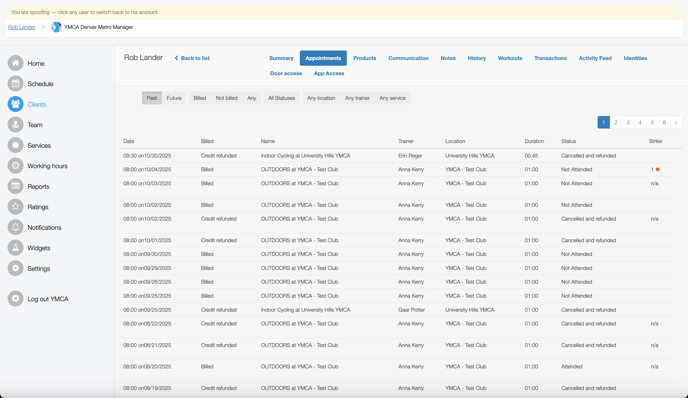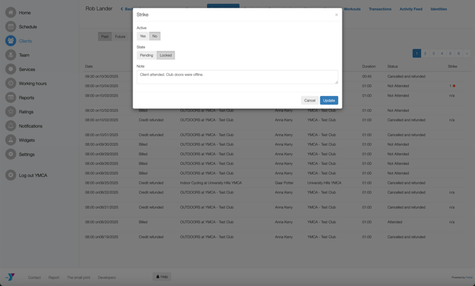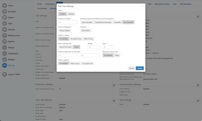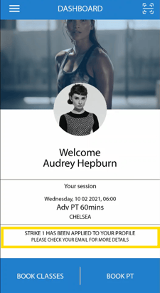 The Strike feature allows clubs to enforce a penalty period for clients who repeatedly cancel late or fail to attend their bookings. During the strike period, affected clients are unable to make new bookings or attend sessions.